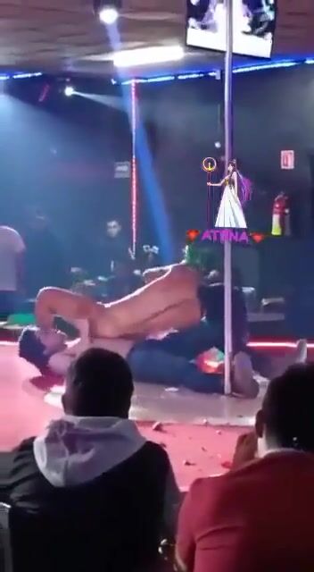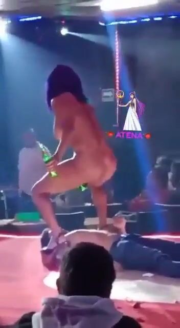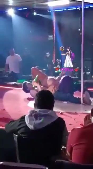 Naked woman doing it with a bottle and having sex on stage