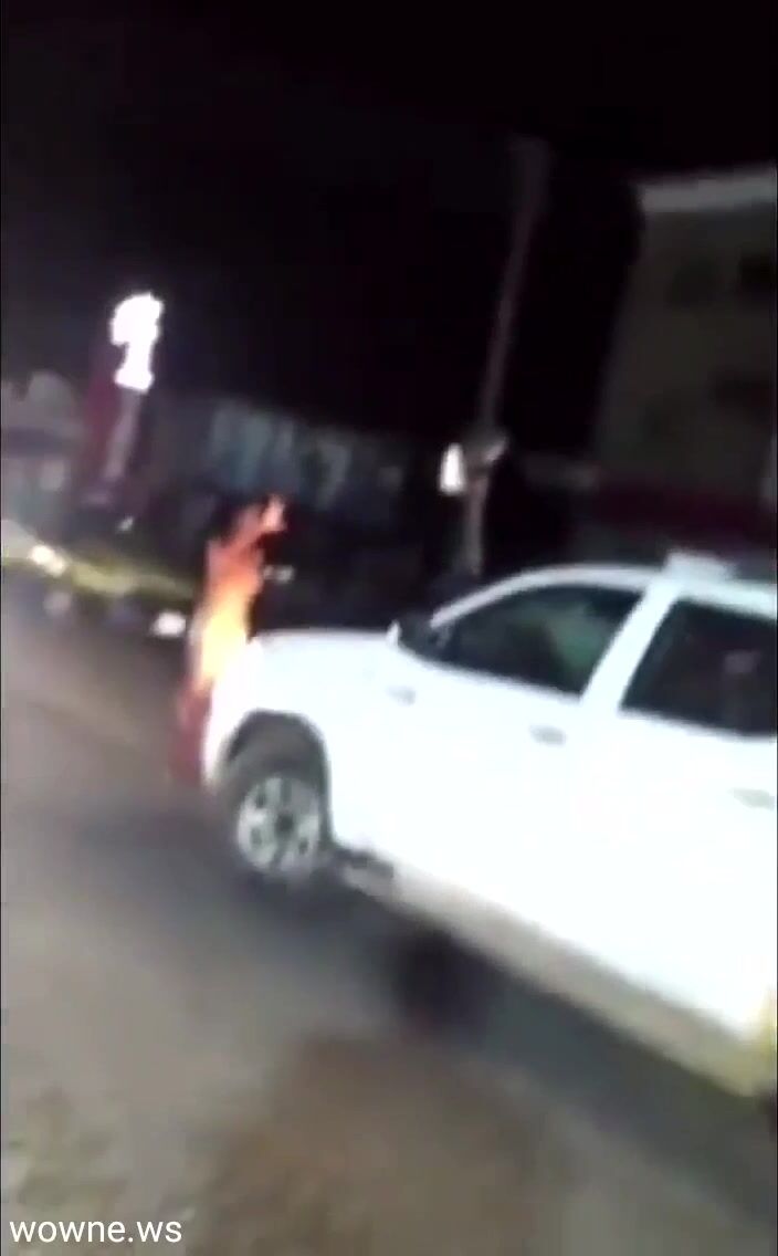 Girl strips naked and runs mad in public the road at night!