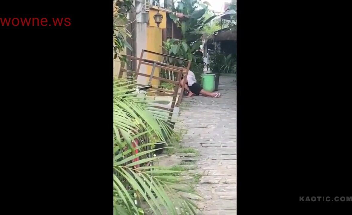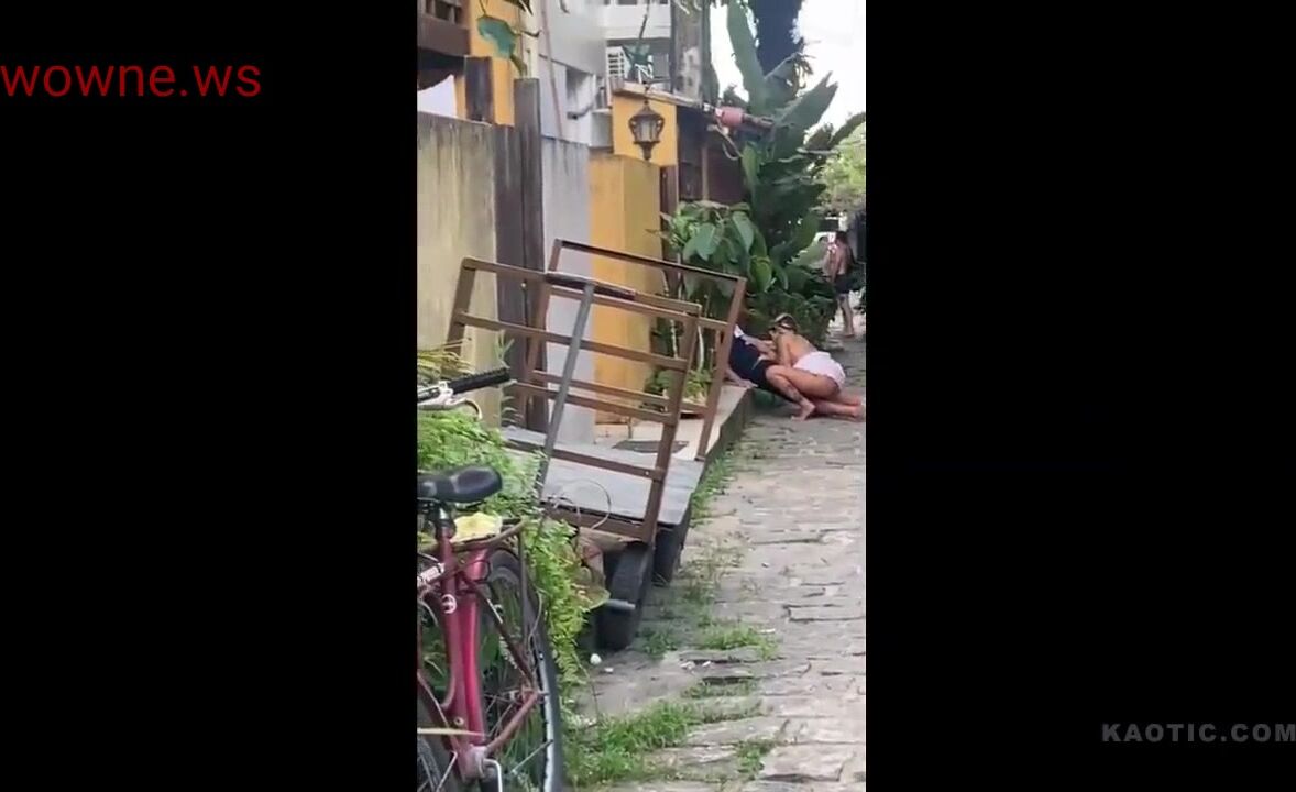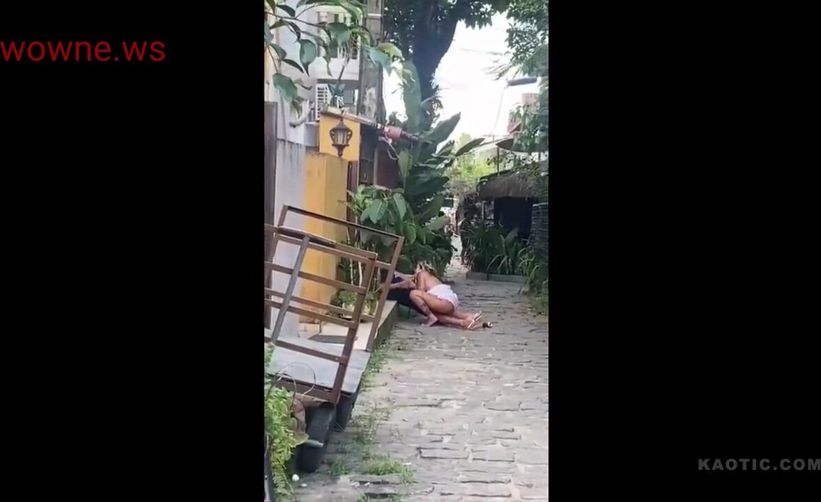 Crazy couple caught having sex outside in public