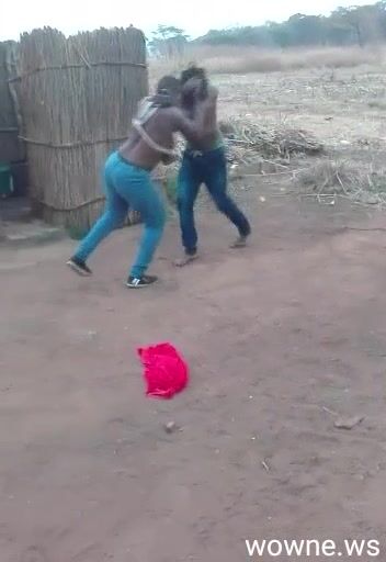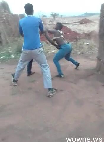Boobs out as old man strips chick while fighting in public