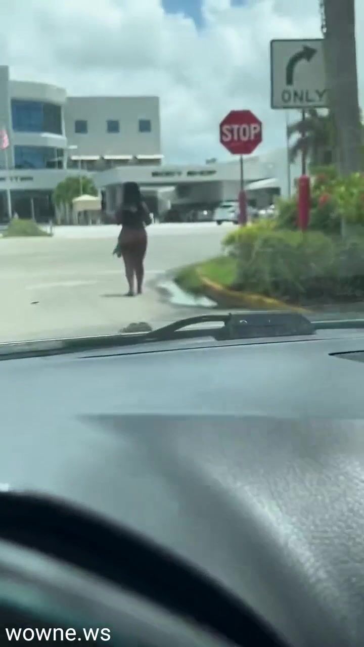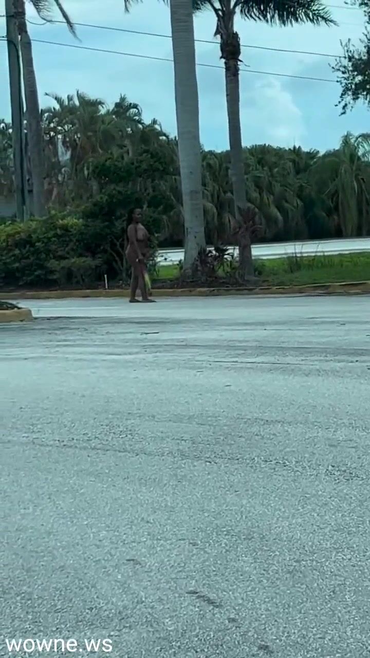 Naked Black Woman With Big Breasts Caught On The Road In Public