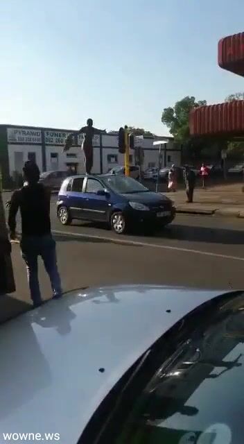Naked Mad South African Woman With Big Ass Caught On A Car Roof In Public
