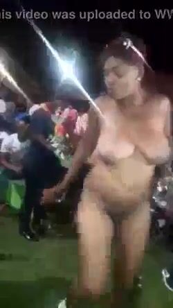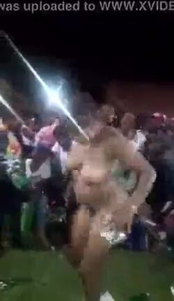 Girl twerking with naked ass in public at an African party
