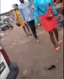 Mob unlawfully beats & strips busty whore naked allegedly for stealing a man’s penis
