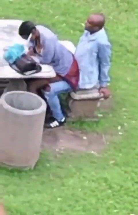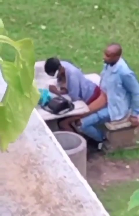African couple caught having discreet sex in a public park