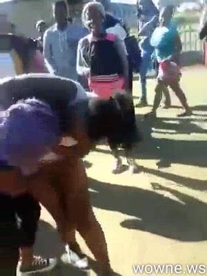 Girl strips her opponent and exposes her naked ass during fight